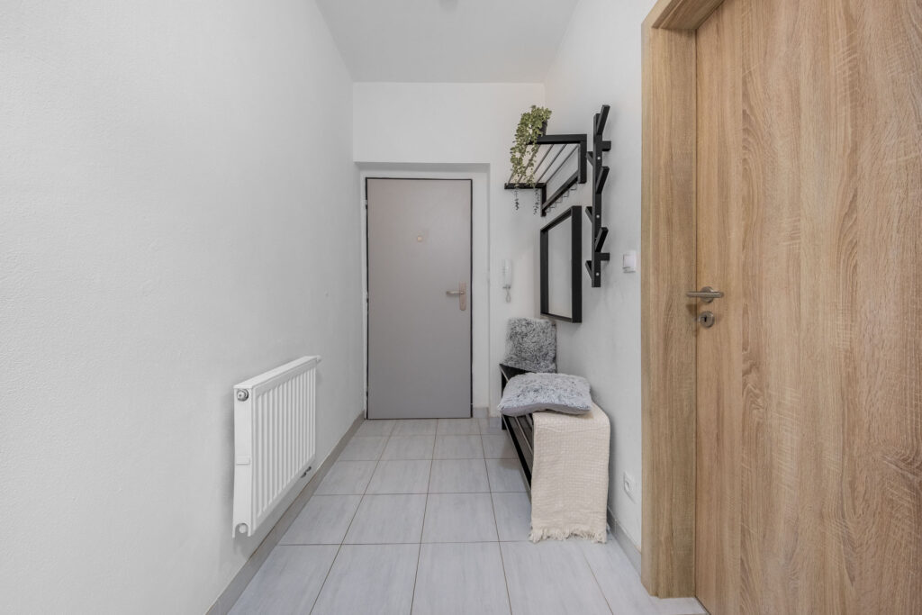 Byt působí klidně a čistě hned při vstupu. Dispozice je promyšlená tak, aby vyhovovala jak pro vlastní bydlení, tak jako bezpečná investice s vysokým potenciálem pronájmu.