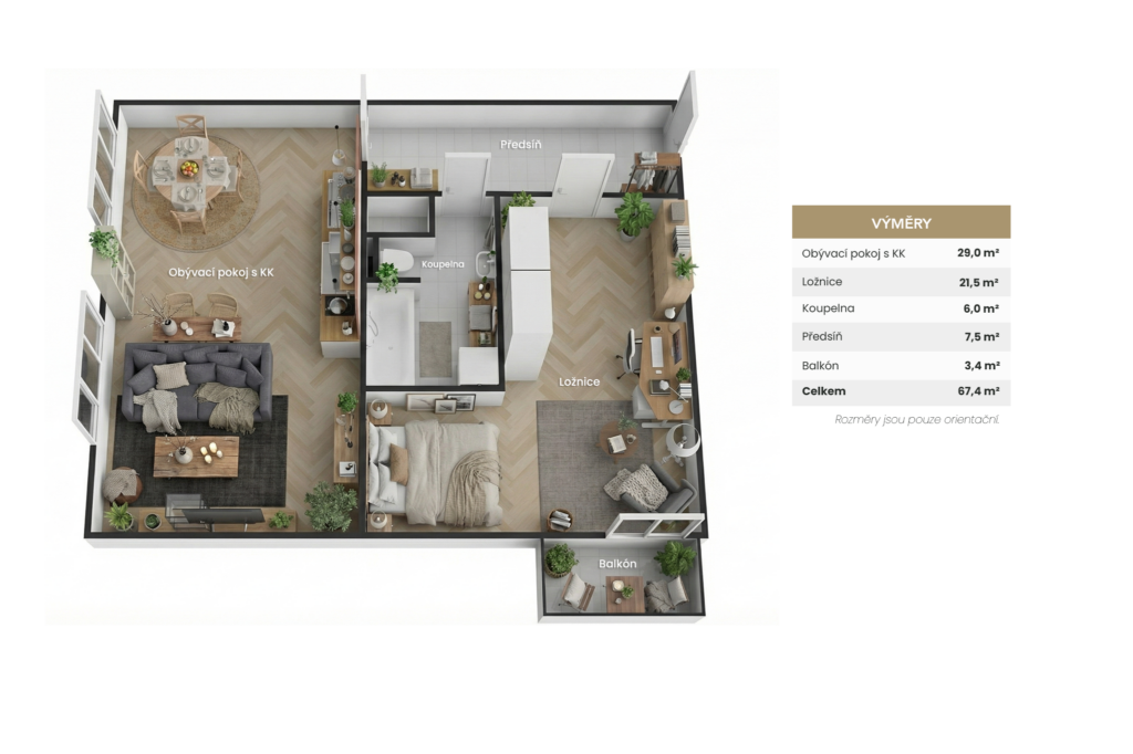 Celková plocha: 67,4 m²
