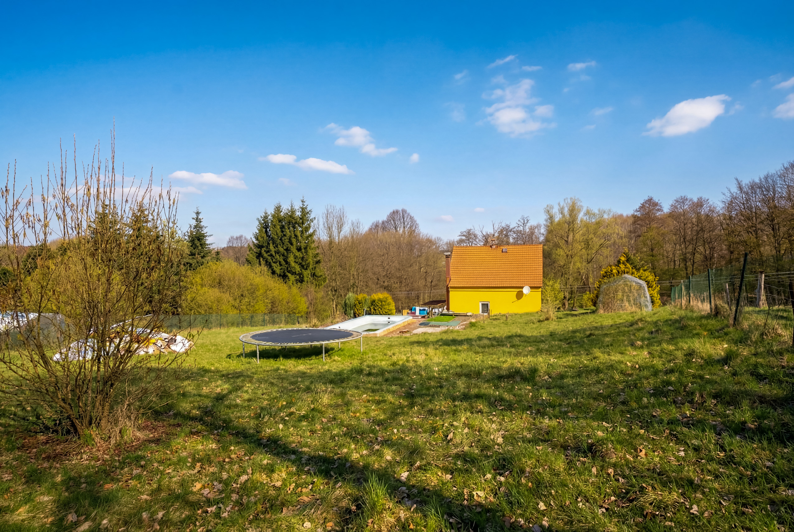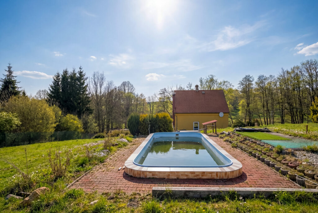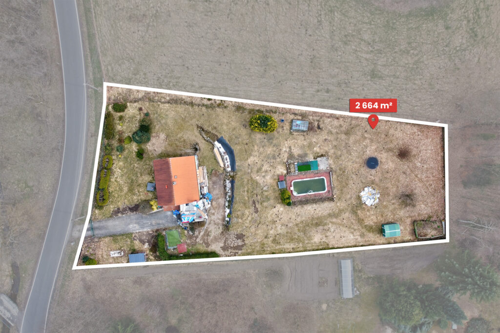 Pozemek o velkorysé rozloze 2 664 m² je orientován na jih, takže si sluneční paprsky užijete od rána až do večera. Tato čistá, mírně svažitá plocha je ideálním „plátnem“ pro vaši budoucí zahradu, dětské hřiště nebo ovocný sad. Hlavním lákadlem je však krytý bazén s novým tepelným čerpadlem a filtrací, který vám umožní maximálně prodloužit koupací sezónu.