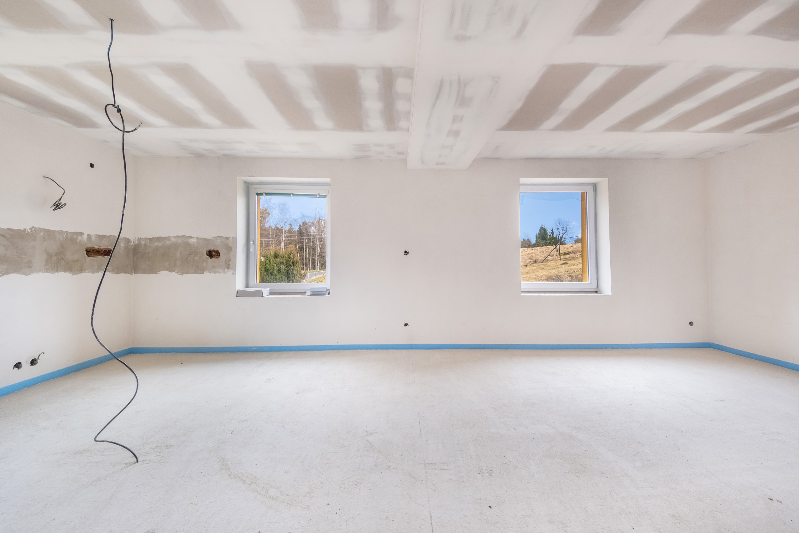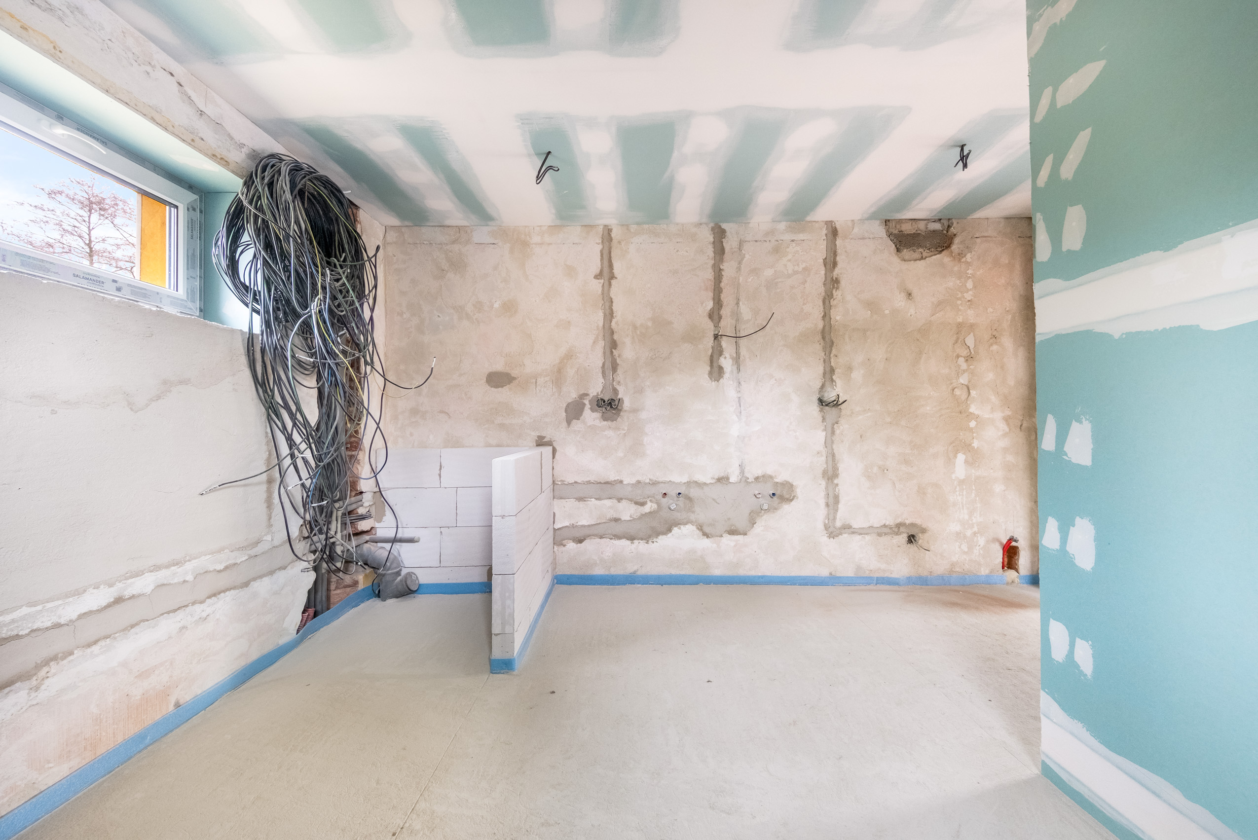 Kompletně byly vybudovány nové rozvody elektřiny, vody i odpadů – vše je tedy zcela nové. To nejtěžší už máte hotové. Můžete tak přeskočit fázi bourání i hrubých prací a přejít rovnou k té příjemnější části: výběru podlah, kuchyně a designu, který vdechne domu vaši osobnost.